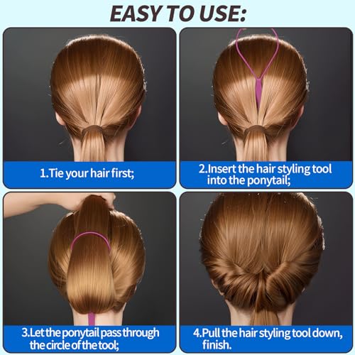Make Simple Ponytail to Special So Easy: Only 4 steps to create special hair braid, 1. Tie hair into ponytail – 2. Insert the hair styling tool- 3. Take pony-tail pass through the tool- 4. Pull this hair loop styling tool down, easy to turn your messy hair to stylish hairstyle in seconds